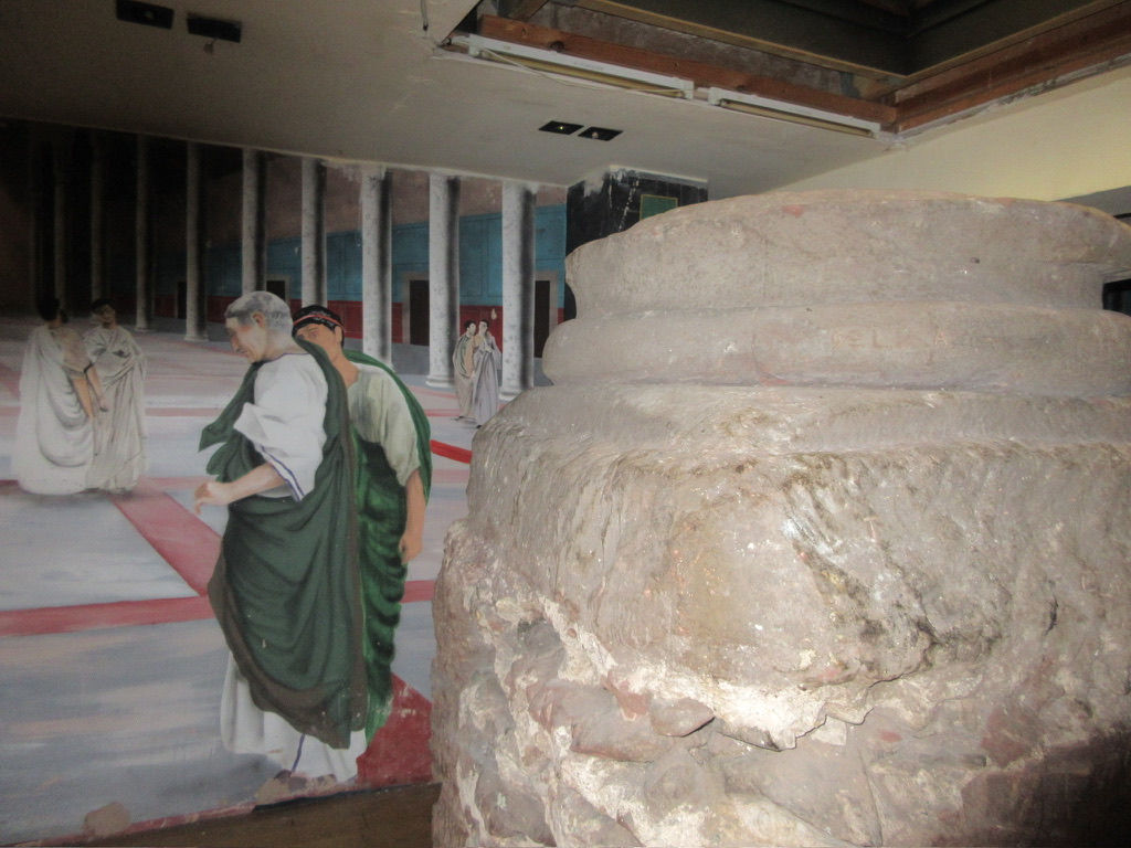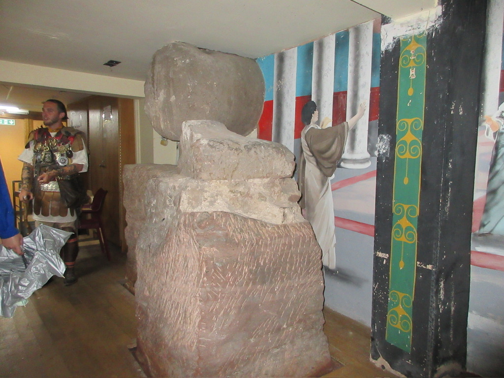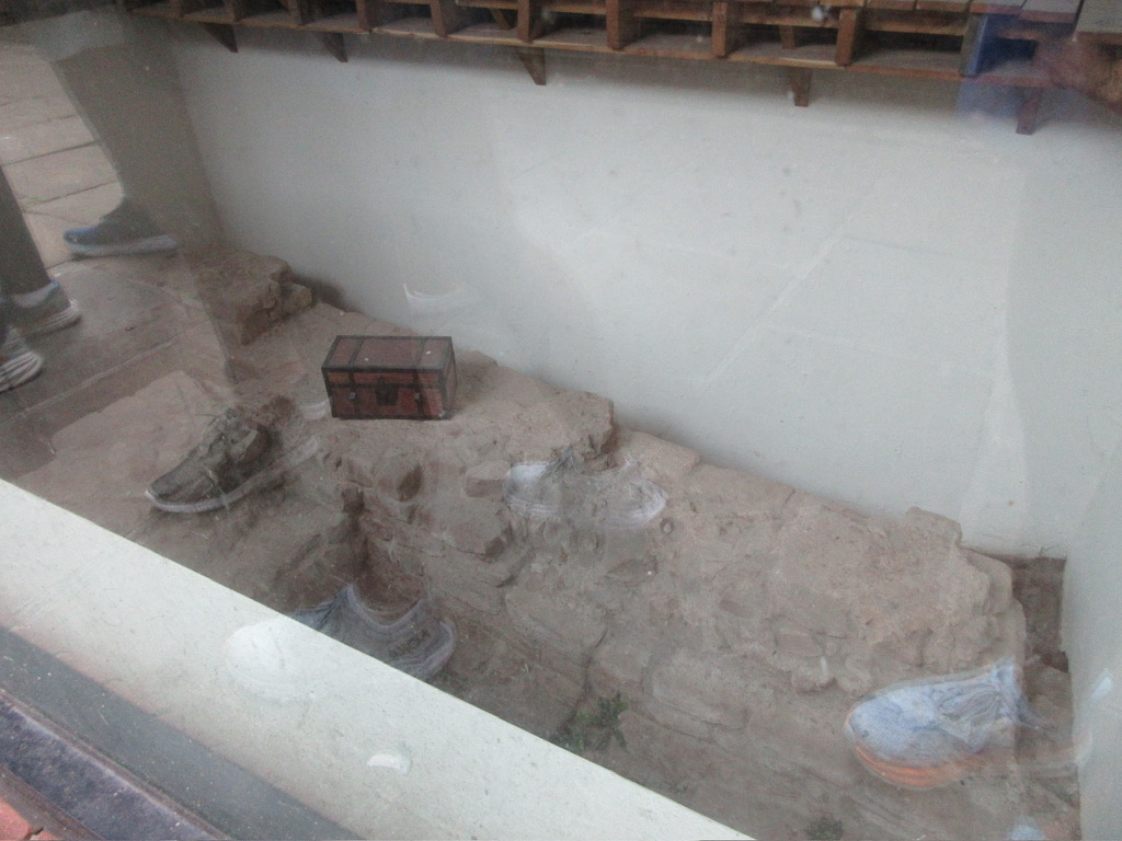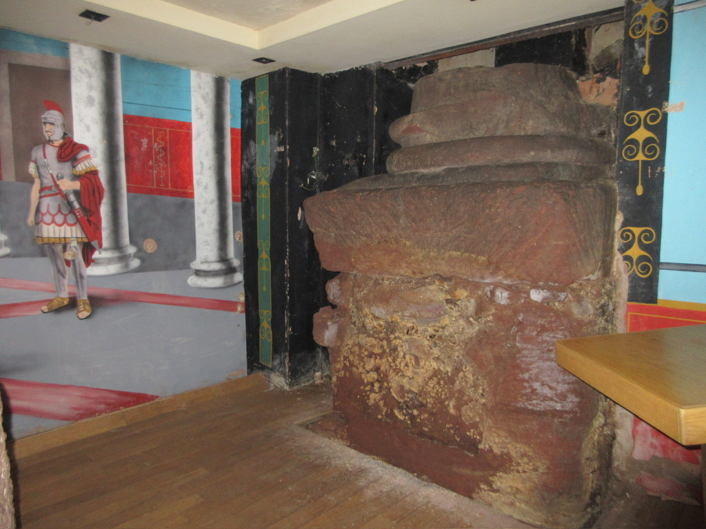 Our first stop was utterly unexpected. In the basement beneath a Pret-A-Manger are the bases and remnants of columns from the principa, the large administrative building for the Roman soldiers stationed in the fortress. When we walked into the Pret, I was confused as to why we were in there, but once we got to the basement, I was completely shocked. The columns were massive in size. Just from the few that were excavated, I was able to imagine just how big the building was. Underneath another building, we were able to peer down into what would be our modern equivalent of a safe at a bank, where all the soldiers’ money was stored.