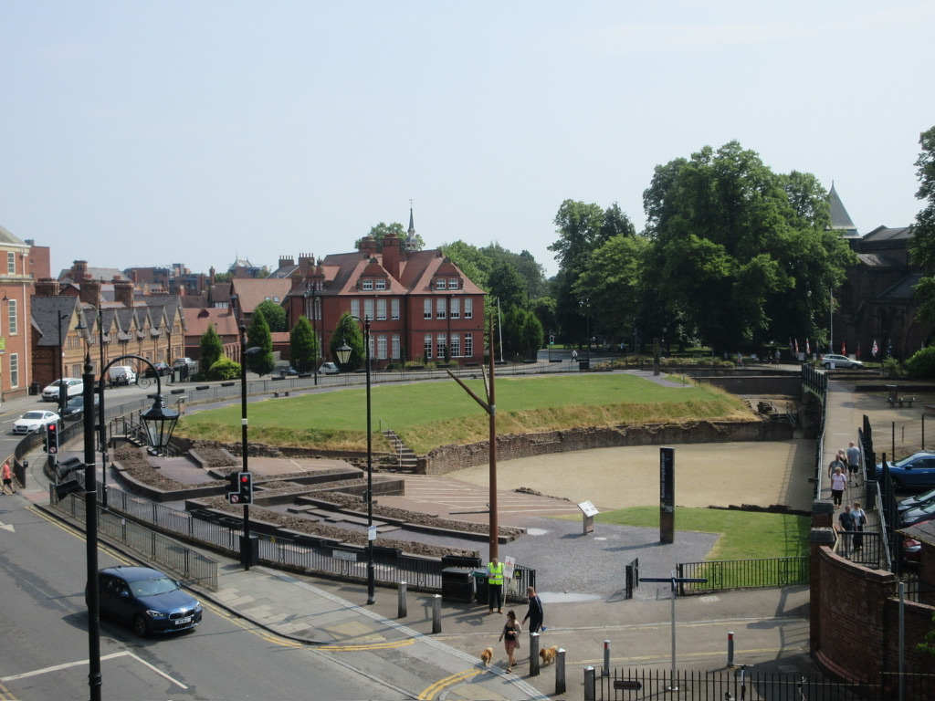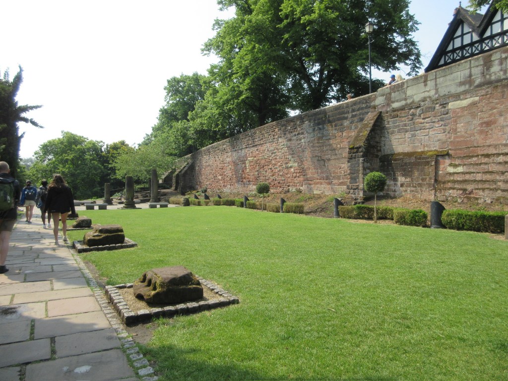 We then walked along the Chester city walls, initially Roman walls surrounding the fortress. The walls were continually built past the Roman times as a defensive system for Chester. As we walked along the walls, we approached the Chester Roman Amphitheater. Only the north half of the structure is uncovered, as the other half is underneath buildings and roads. It is the largest amphitheater uncovered in Britain, so far.